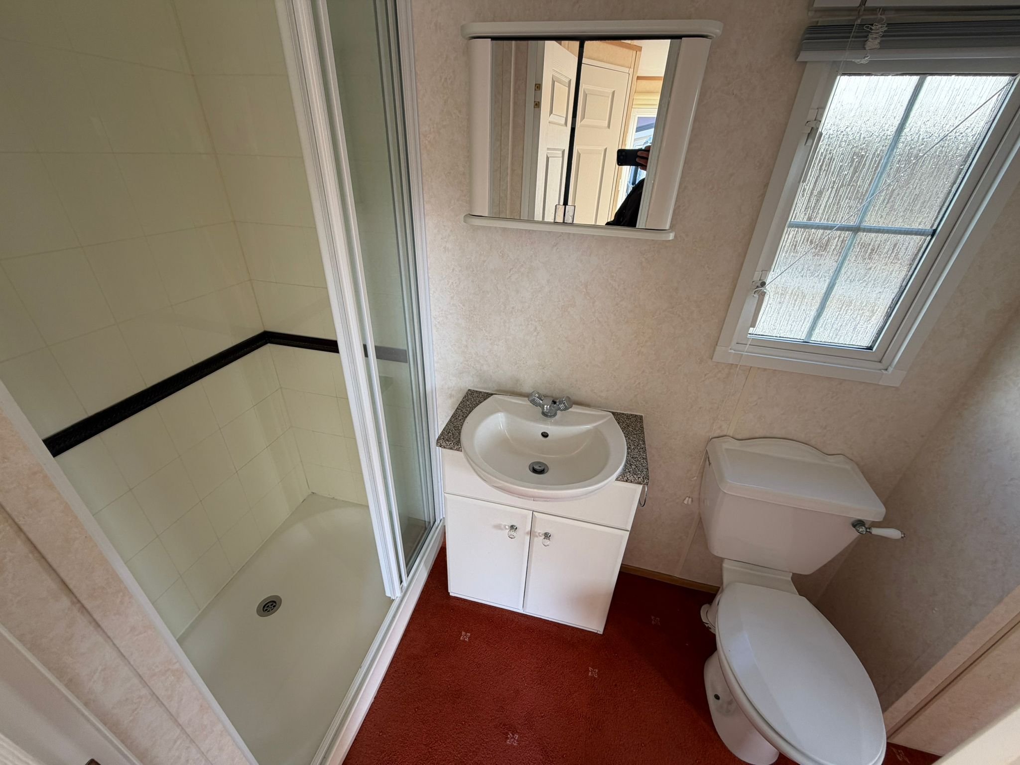 • Kúpeľňa s priestranným sprchovacím kútom, umývadlom a WC