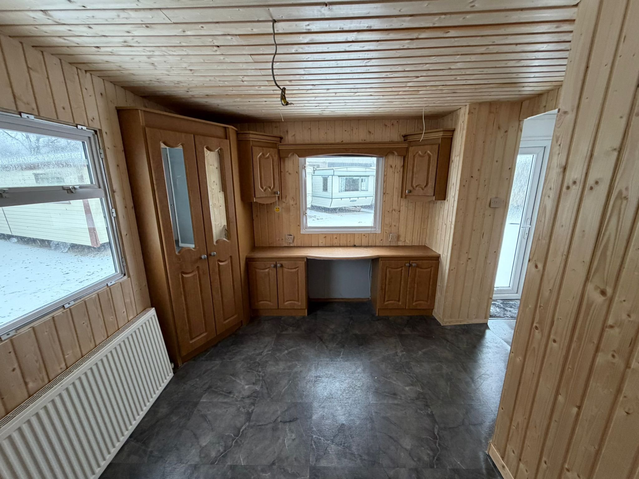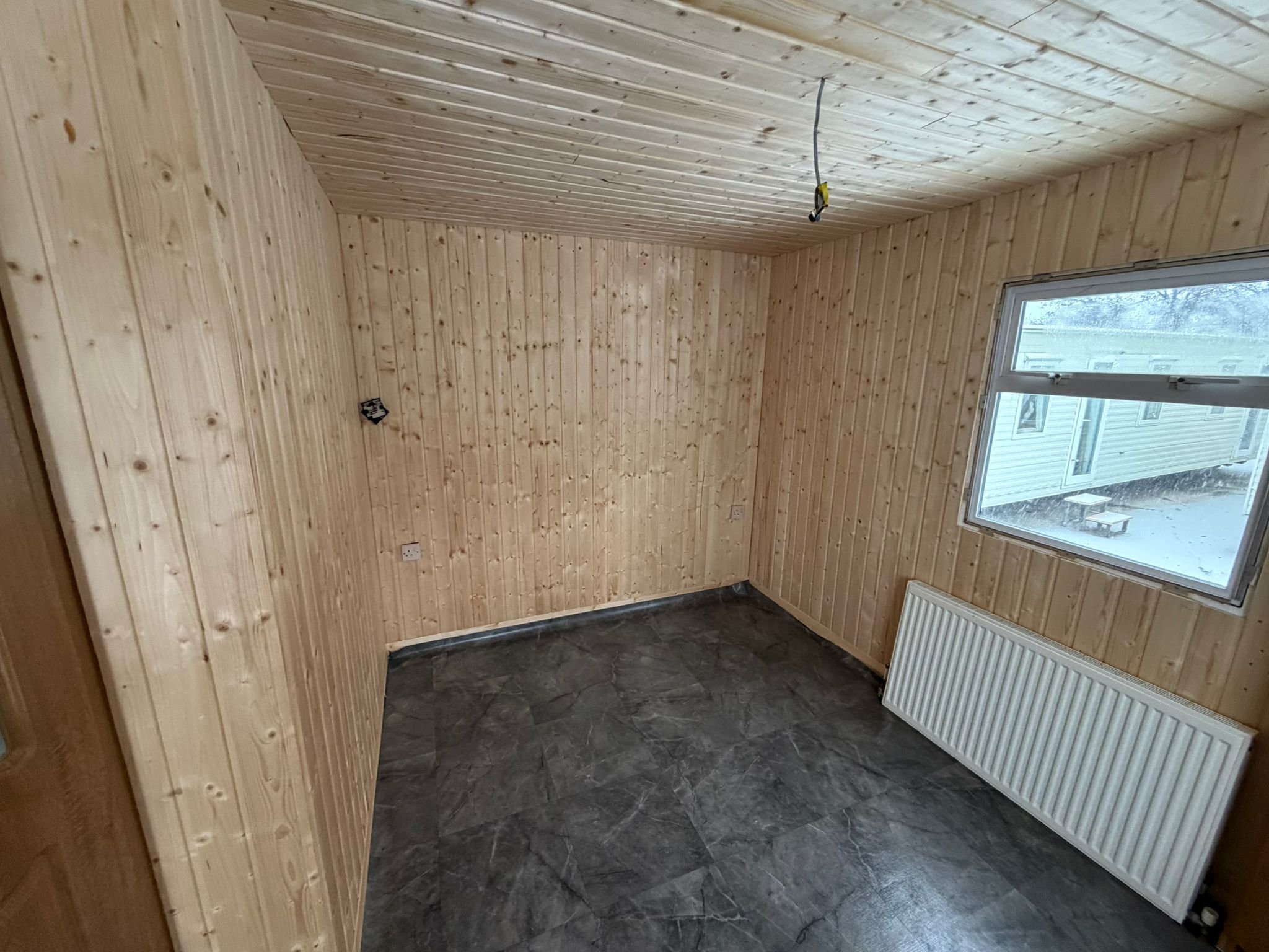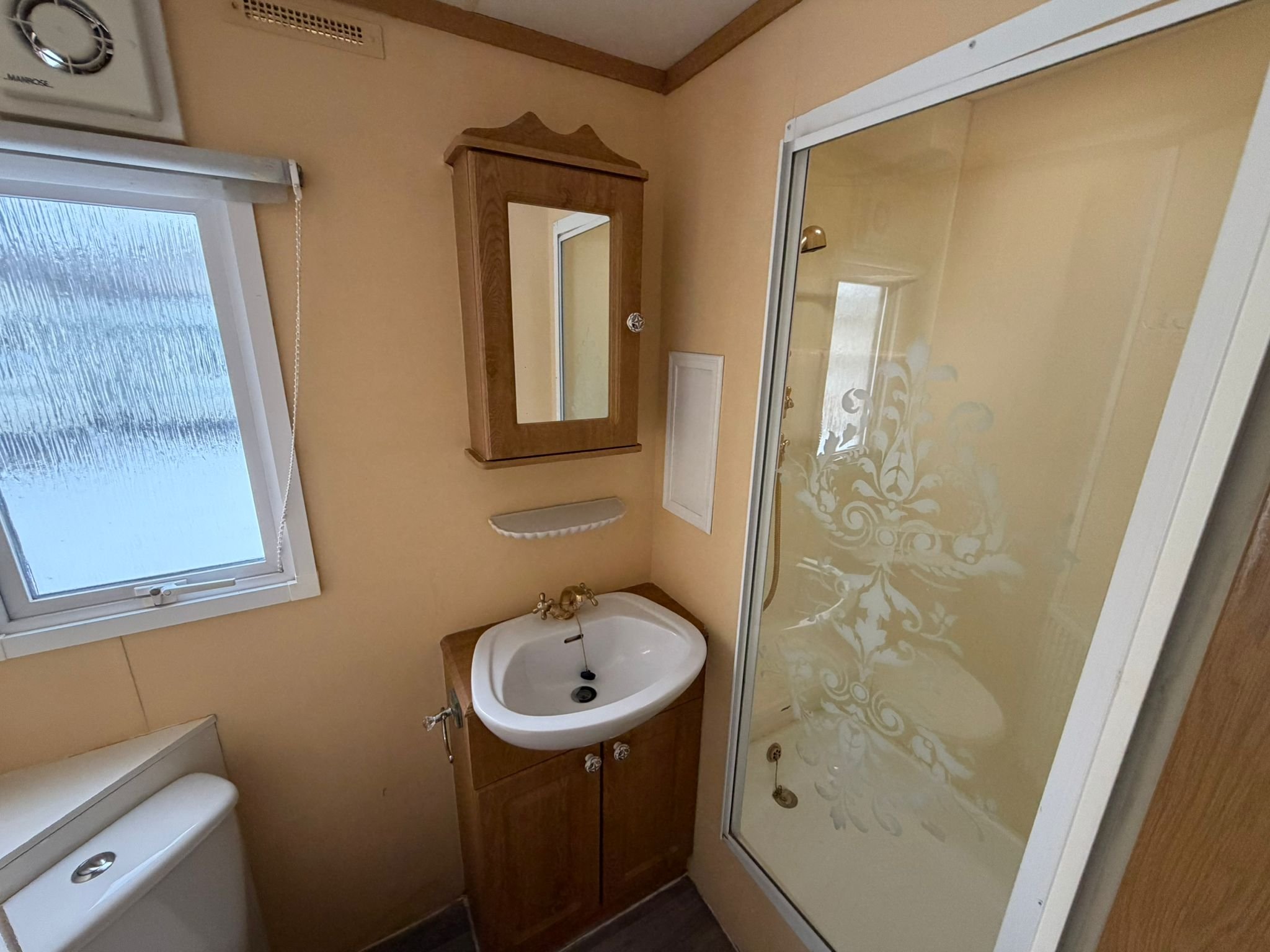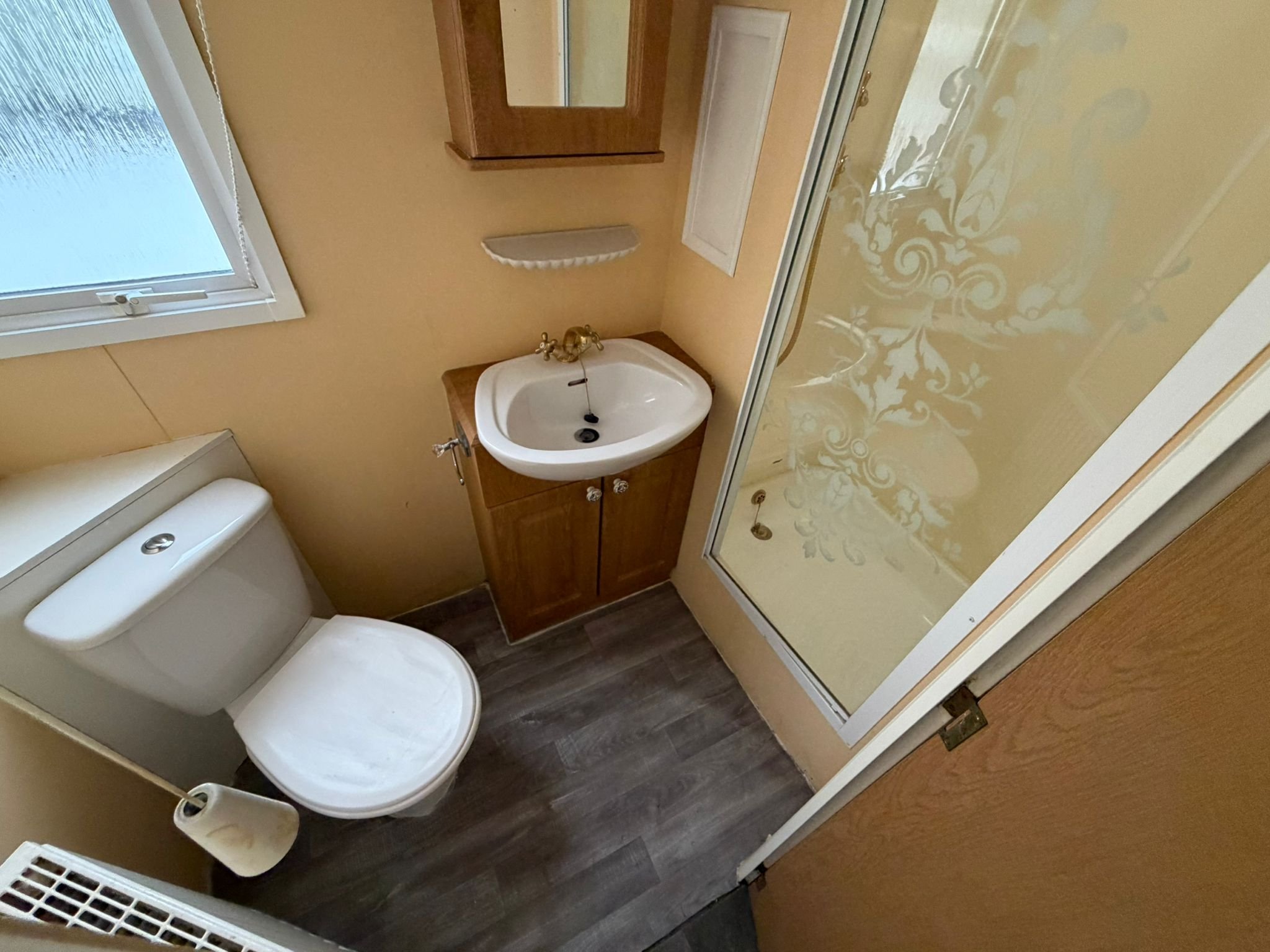 - V mobilnom dome sa nachádza kúpelňa so sprchovým kútom, umývadlom a WC.