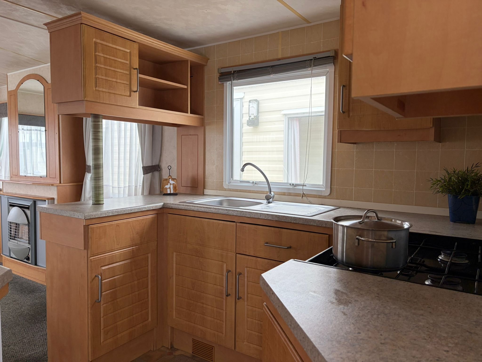 • Mobilný dom má plynový prietokový ohrievač