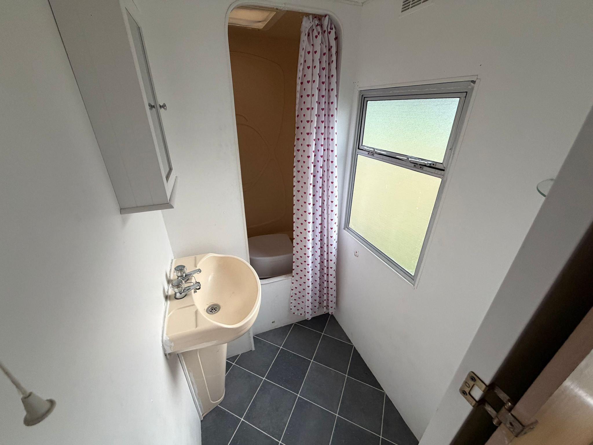 • Kúpeľňa so sprchovacím kútom a umývadlom