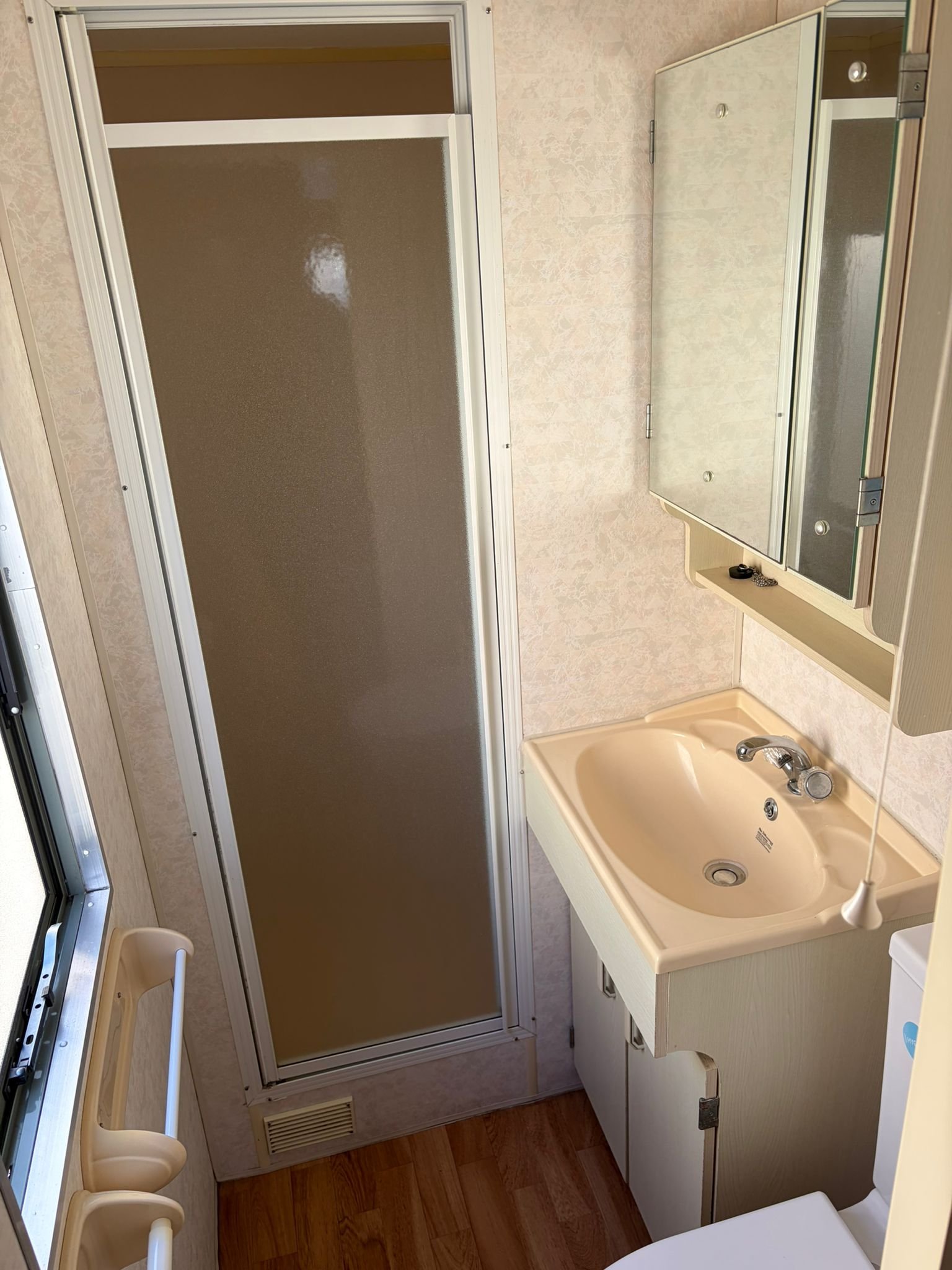 • Kúpeľňa so sprchovacím kútom, umývadlom a WC