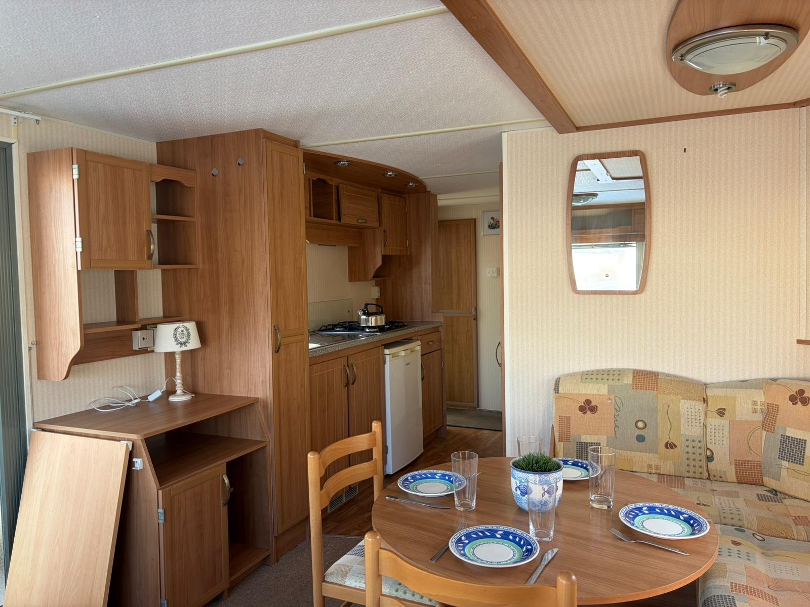• Mobilný dom má plynový prietokový ohrievač