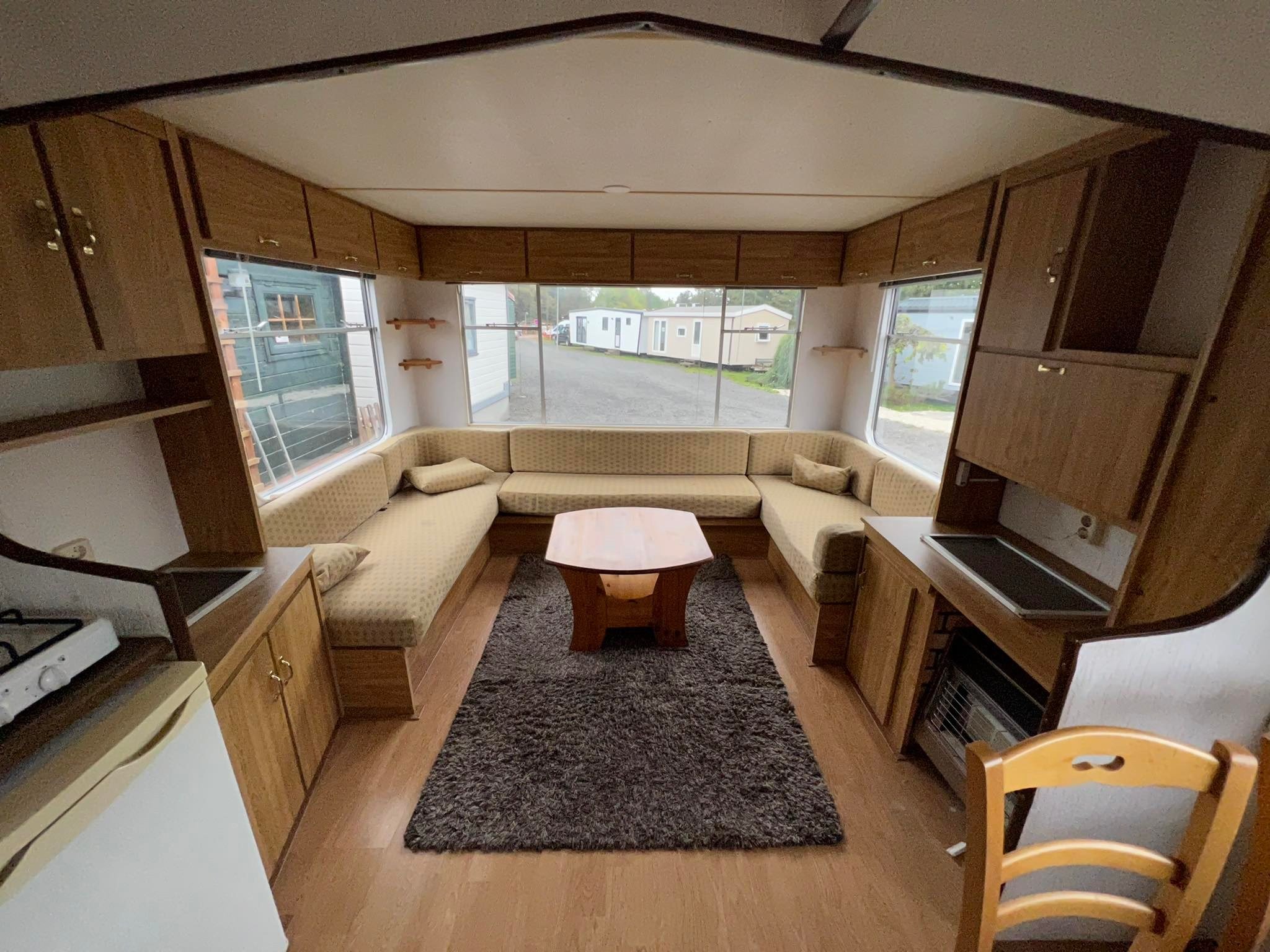 - V poslednej rade sa v mobilnom dome nachádza kúpelňa so sprchovým kútom, umývadlom a WC.